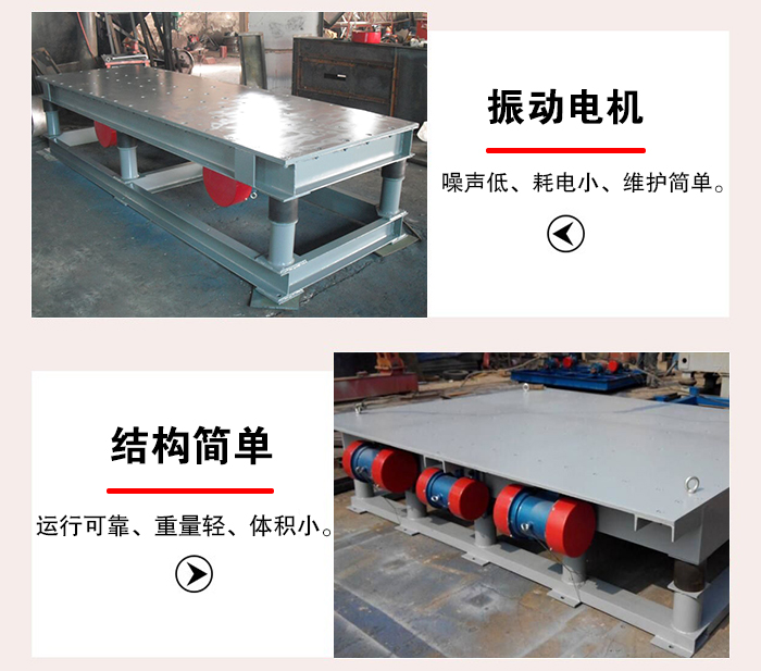 2、振實臺的振動機(jī)構(gòu)主要由若干臺振動電機(jī)、傳動板構(gòu)成,振動電機(jī)的數(shù)量一般為偶數(shù),如:4、6、8、10等,振動電機(jī)的型號決定了三維振實臺的主要技術(shù)參數(shù)。